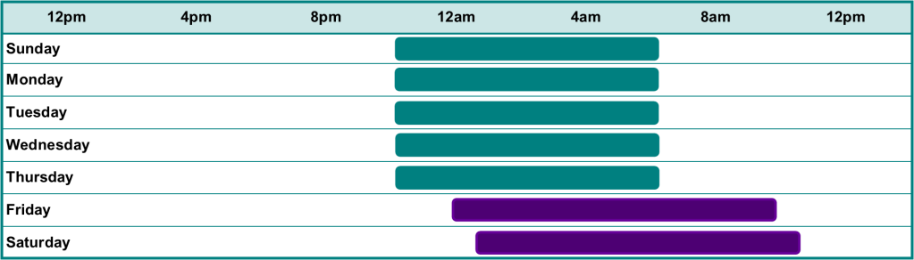 With busy week schedules, it is common habit to catch up on sleep over the weekend by sleeping in with the absence of an alarm clock. Later bed times are also a common weekend occurrence, either out of personal preference or as a result of a social engagement. This sleep time mismatch between the work days (week day) and non-work days (weekend) is referred to as social jet lag; a temporary and typically repetitive form of circadian misalignment.